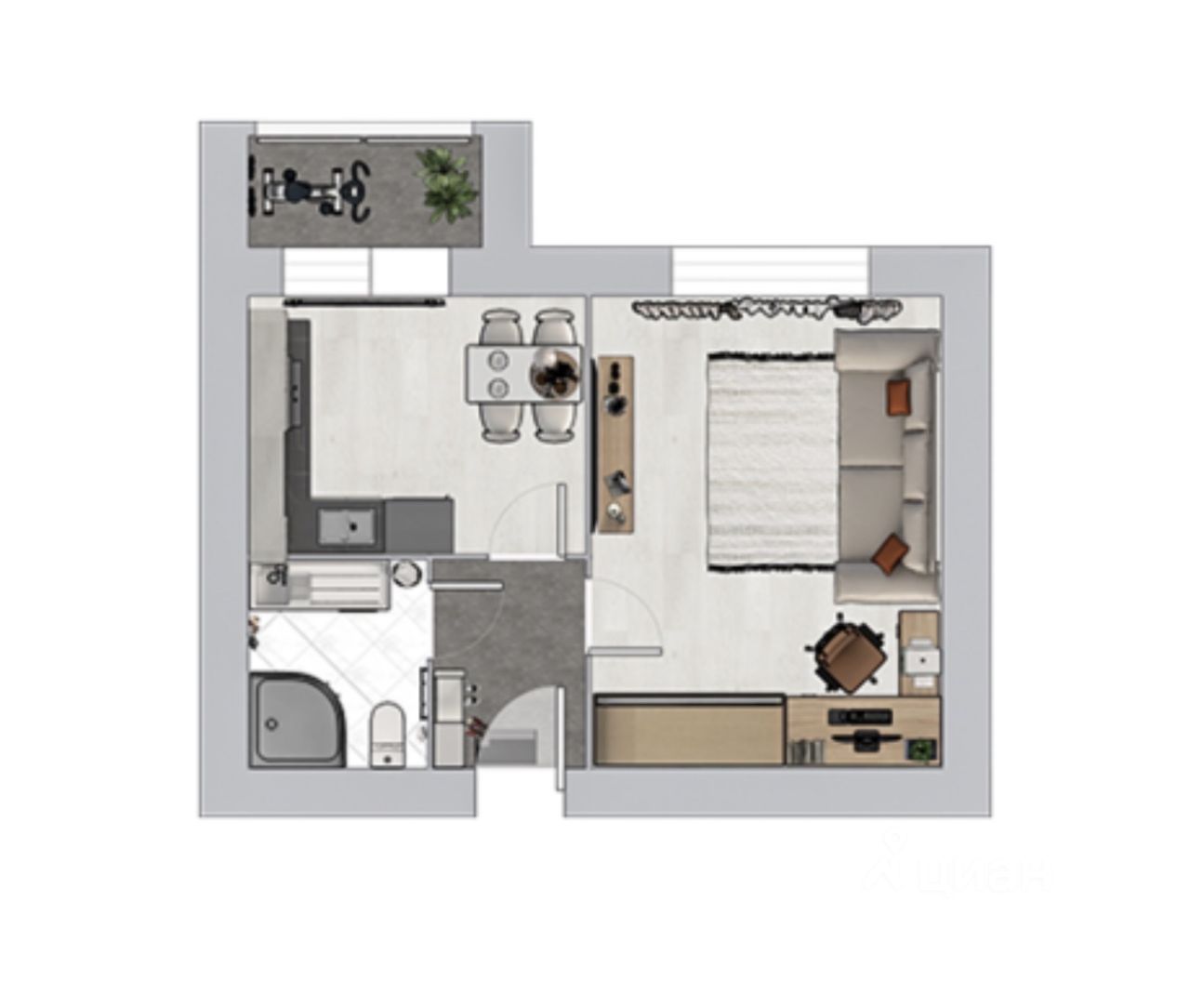 Общая площадь: 29.06 кв.м. продуманное пространство для жизни.