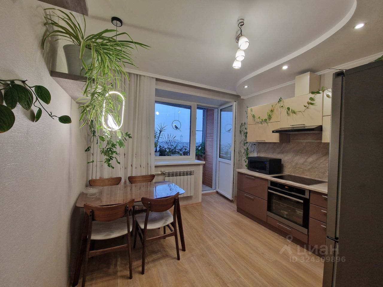 В центре города продается просторная, уютная, светлая, теплая, не угловая квартира с балконом, утепленной лоджией, выходящими на южную сторону, и гардеробной комнатой. На лоджии установлены электрический теплый пол, огромная система хранения с розетками для морозильной камеры и вертикального пылесоса, откидной стол с барными стульями, позволяющими завтракать, обедать и ужинать в любое время года с прекрасным видом на город.
