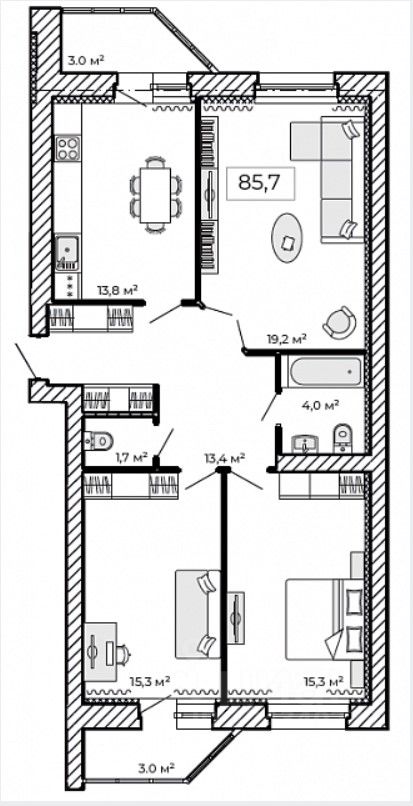 85,7 м²
