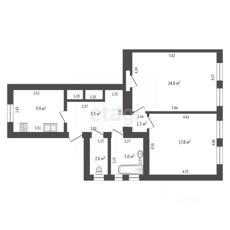 Предлагаю к продаже 2 к кв общей площадью 73,10 в кирпичном доме на 3 этаже трёхэтажного дома.
