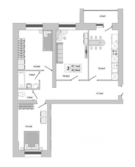 87,1 м²