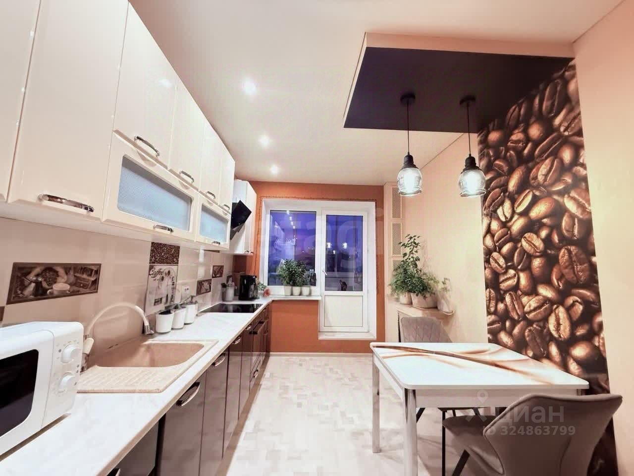 теплая не угловая просторная кухня большой балкон застеклен, имеет выход на кухню и в спальню