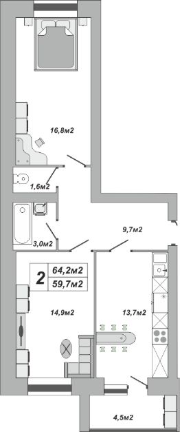 64,2 м²