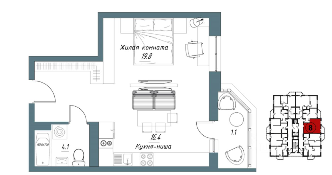 19,8 м²
