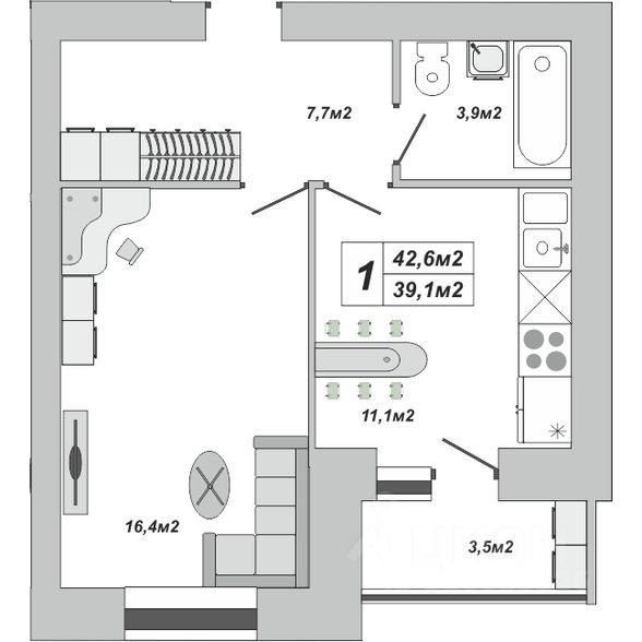 42,6 м²