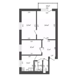 Две спальни - 12кв.м. и 8.5 кв.м, что идеально для семьи с детьми. Всем найдется отдельное спальное и рабочее место. Из окон открывается живописный вид на тихий двор.