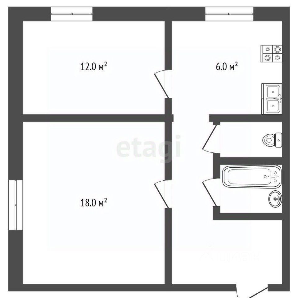 Площадь комнат 12 и 18 кв.м. Кухня - 6 кв.м.