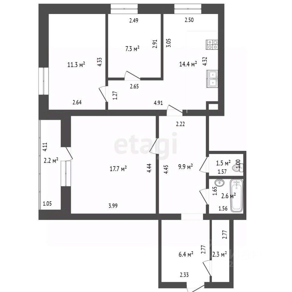 Продается квартира 3 комнатная, на 4 этаже пятиэтажного кирпичного дома, общая площадь 74,3 кв.м (кухня -14.4 кв.м, зал -17,7,коридор больше 20кв.м,спальни раздельные).