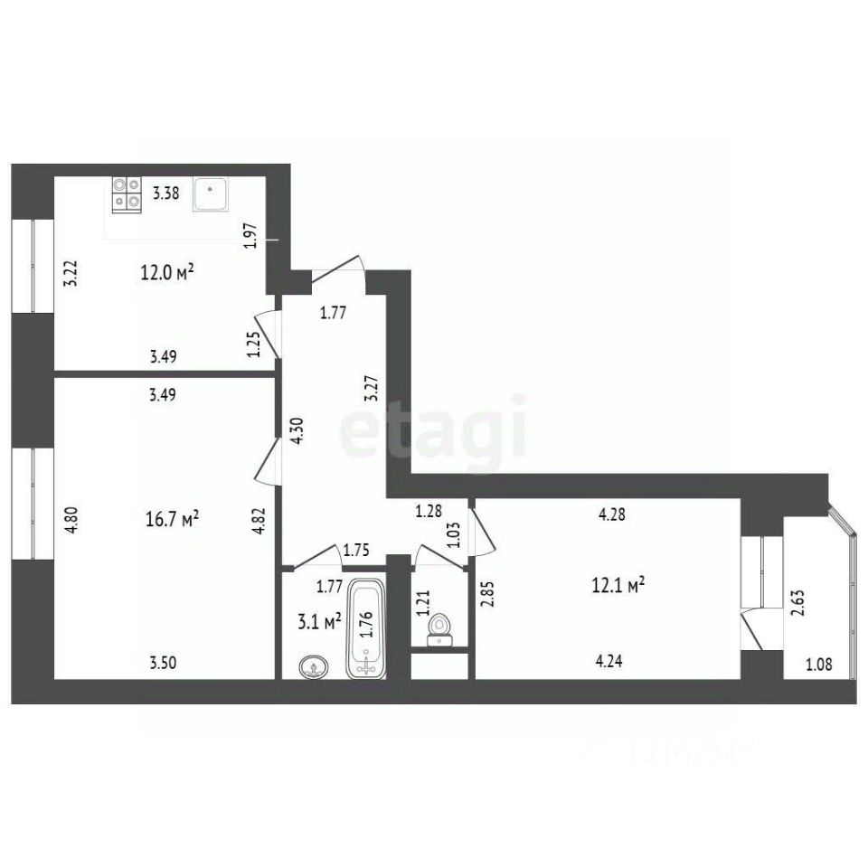 Квaртиpa нaxoдится нa 8 этaжe 10-этaжнoго дома, площадь 53 кв.м.