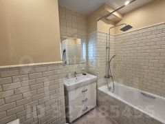 Квартира имеет совмещенный санузел, в котором установлен бойлер для горячей воды и предусмотрена подводка для стиральной машины. В кухне, ванной и коридоре установлен теплый пол, что обеспечивает комфорт в холодное время года. На полу в ванной, коридоре и кухне уложена плитка, а в остальных комнатах — ламинат. Стены оформлены обоями, а потолки — натяжными, что создает стильный и современный интерьер.