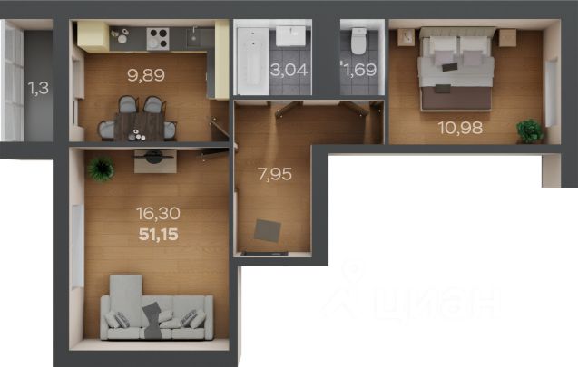 51,15 м²