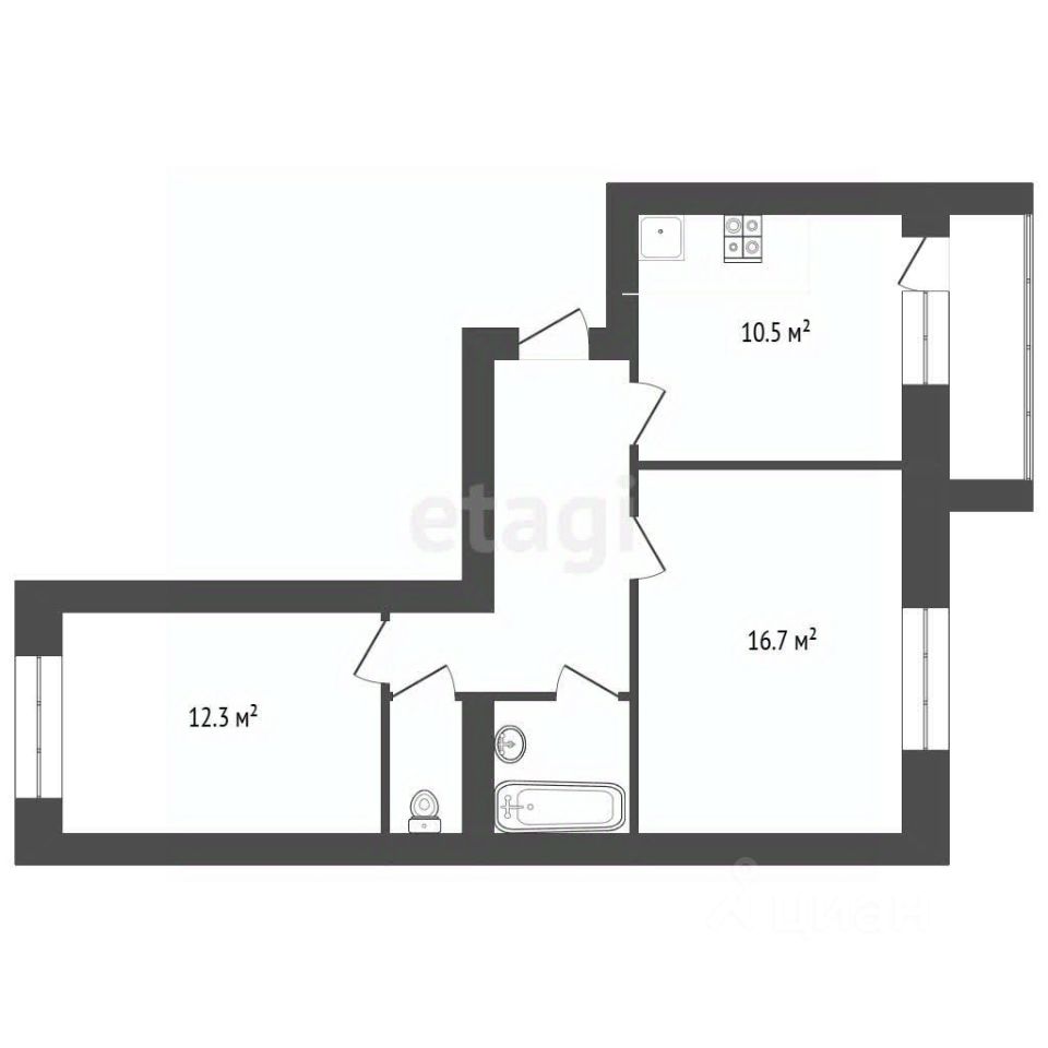 4. Просторные комнаты: Комнаты площадью 16.7 и 12.3 кв. м наполнены светом и воздухом, позволяя вам создать уютную спальню и детскую, где каждый уголок будет обжит с любовью.