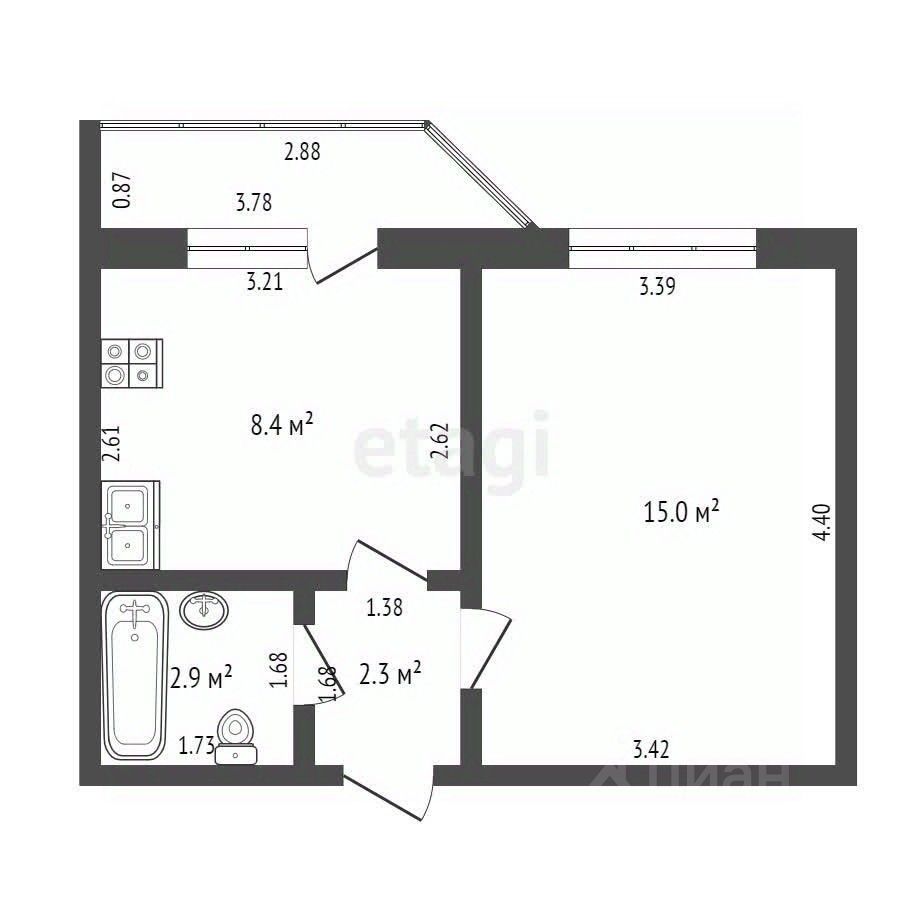 В квартире выполнен качественный косметический ремонт. Санузел совмещенный в плитке. Выход на балкон из кухни. Балкон остеклен.