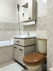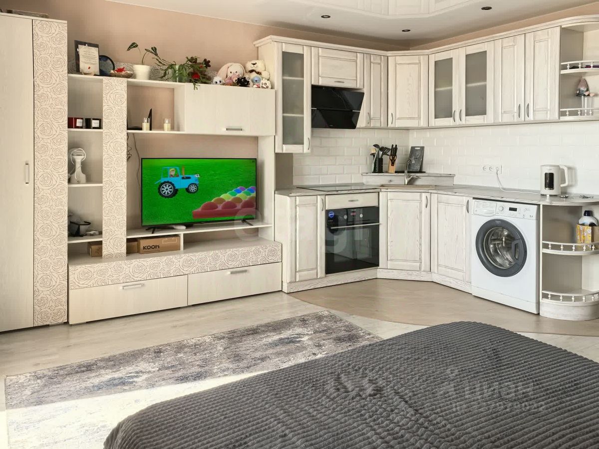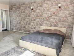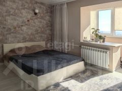 Студия с современным ремонтом, большой лоджией совмещенной с комнатой, что добавляет простора комнате.