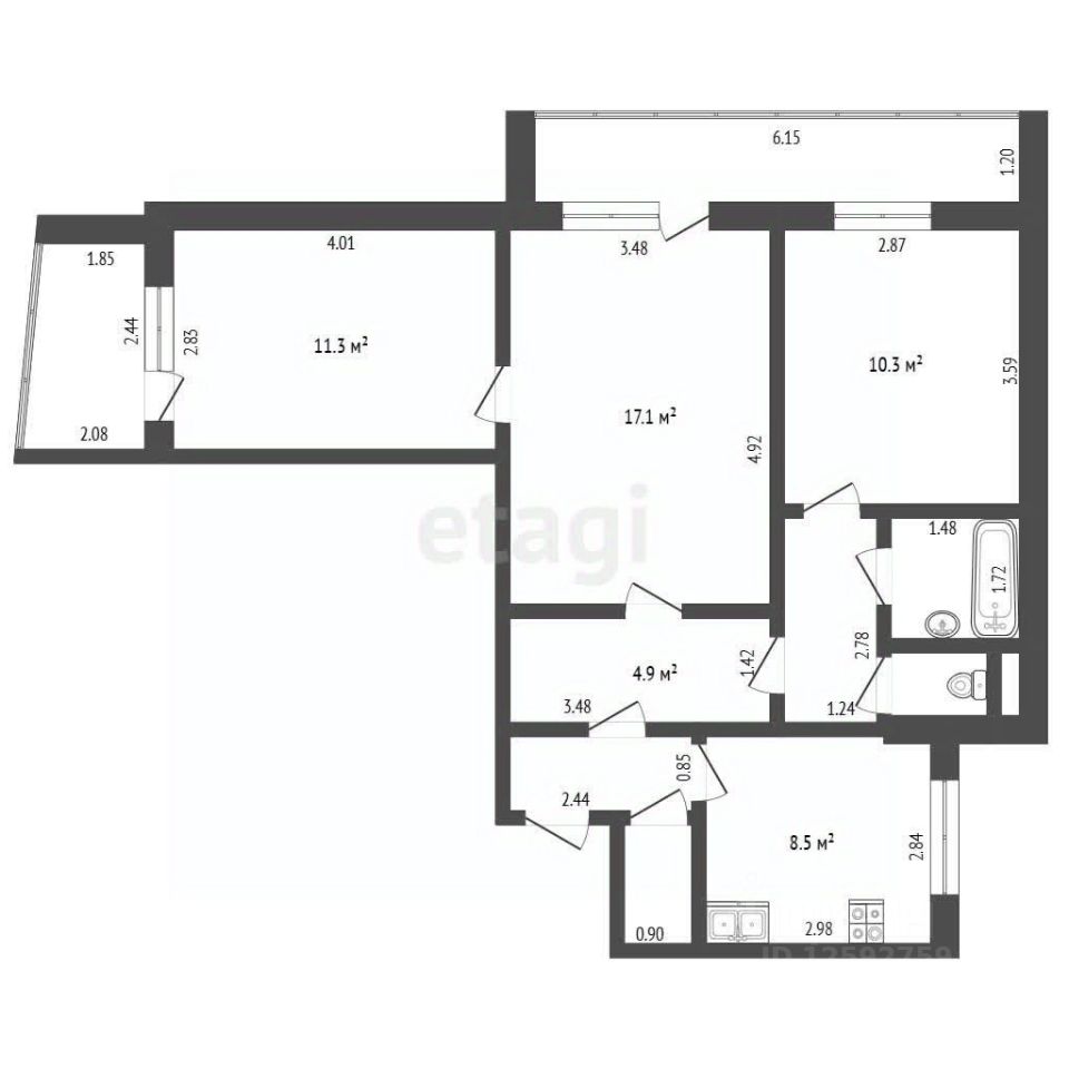 3-комнатная квартира