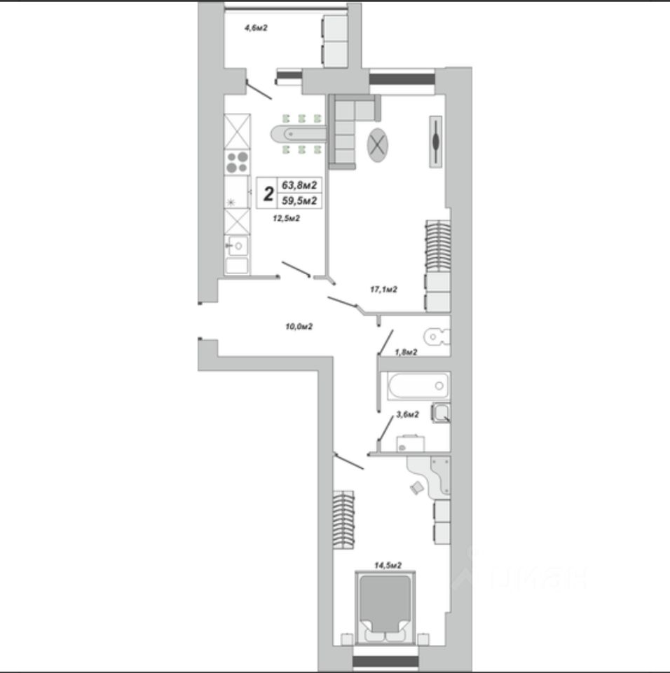 63,8 м²