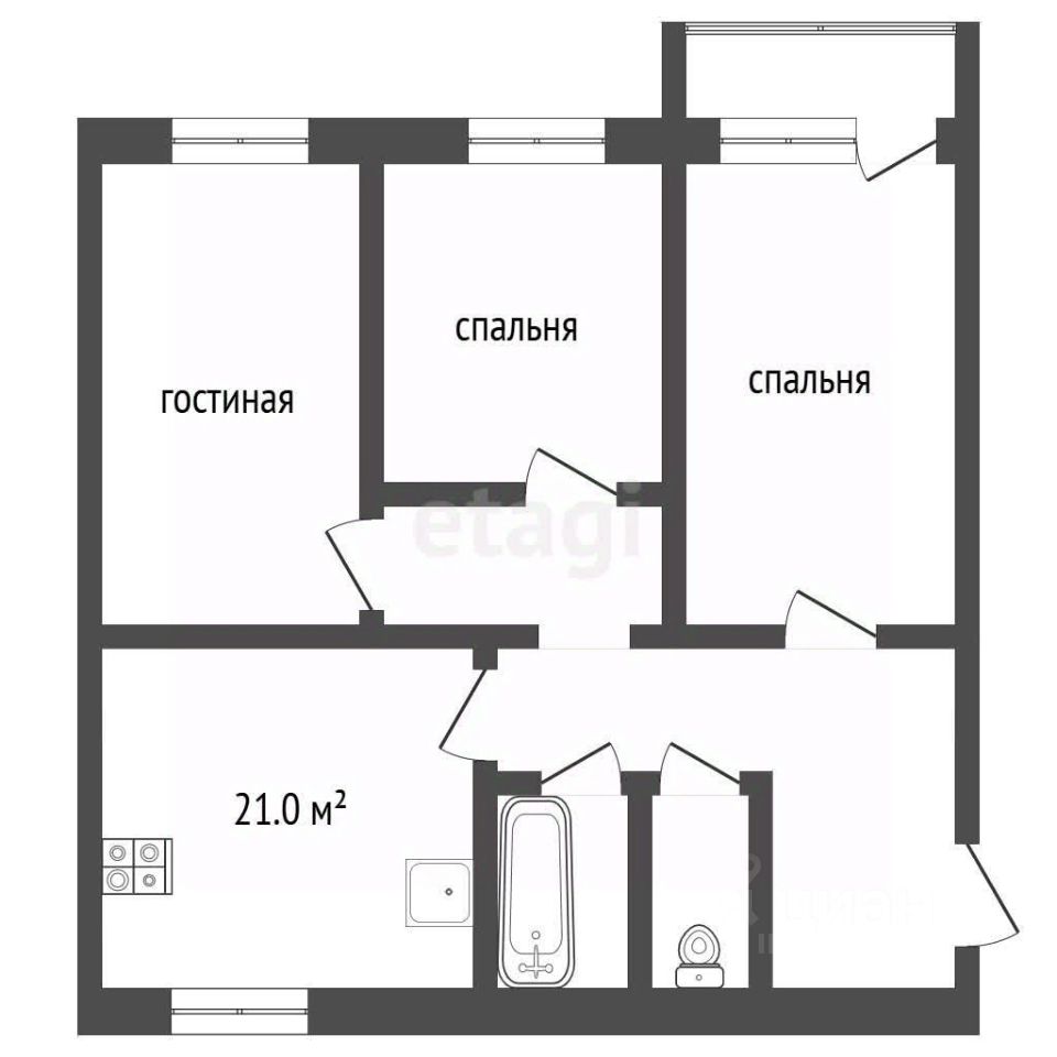 Ключевое преимущество объекта — удачная и рациональная планировка с изолированными комнатами и большой кухней в 21 кв.м, что создает комфорт для жизни семьи.