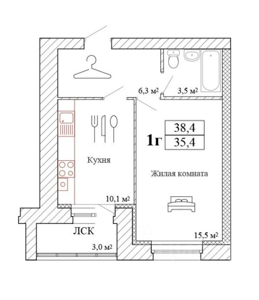 38,4 м²