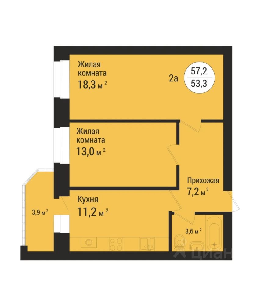 Продается 2-к квартира 57,2 кв.м. в строящемся кирпичном доме в ЖК ЕВРОПЕЙСКИЙ-2 (5 очередь).