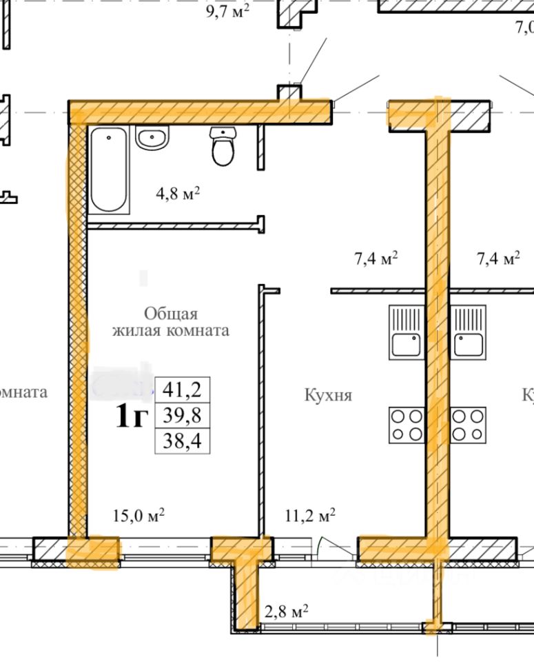Общая площадь41,2 м²