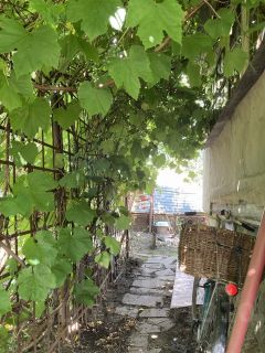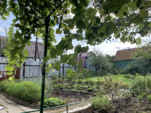 На участке растут клубника, малина, крыжовник, черная и красная смородина, жимолость, айва, виноград, яблони.