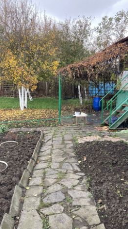 Участок 615 кв.м, находится в собственности (один собственник). На земельном участке расположены летний душ, туалет, одноэтажный высокий блочный дом с кухней и большой спальней (площадь дома - 25 кв.м), под всем домом - подвал (можно использовать для хранения стройматериалов, рабочих инструментов и пр.). В дом подведена вода, есть электричество (установлен счетчик). Имеется место для парковки автомобиля внутри участка.