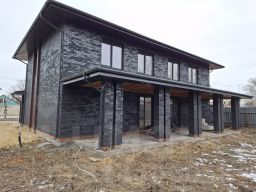 По площади таунхаус делится на две двухуровневые квартиры по 150 кв.м. и земельный участок у каждого собственника по 3,5 сотки.