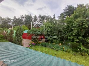 На земельном участке много декоративных растений и плодово-ягодных насаждений. Есть отдельно стоящий гараж и открытая парковка для машин.