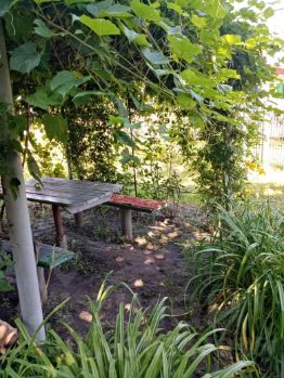 На территории есть беседка, где можно наслаждаться свежим воздухом и красивыми видами на ухоженный участок. Есть кирпичный сарай, летний душ, туалет. Участок огорожен, вокруг растут цветы, плодоносящие деревья и кустарники, создавая атмосферу уюта и спокойствия.