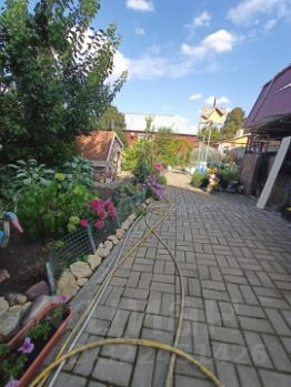 Участок площадью 509 кв.м. Выполнено благоустройство, озеленение и ограждение участка. Плодовые деревья и кустарники. Многолетние цветы. Во дворе дома- обустроено пространство для отдыха: закрытая беседка, мангальная зона. Перед участком парковочные места на несколько машин.