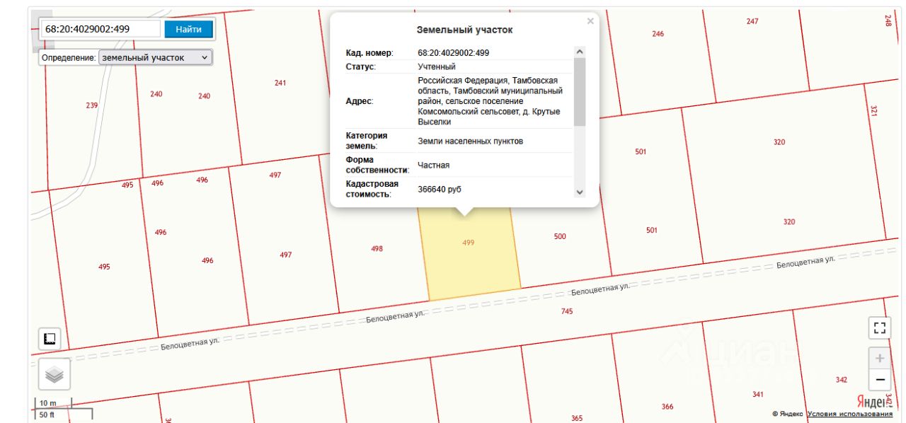 Продается земельный участок площадью 10 соток с кадастровым номером 68:20:4029002:499.