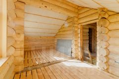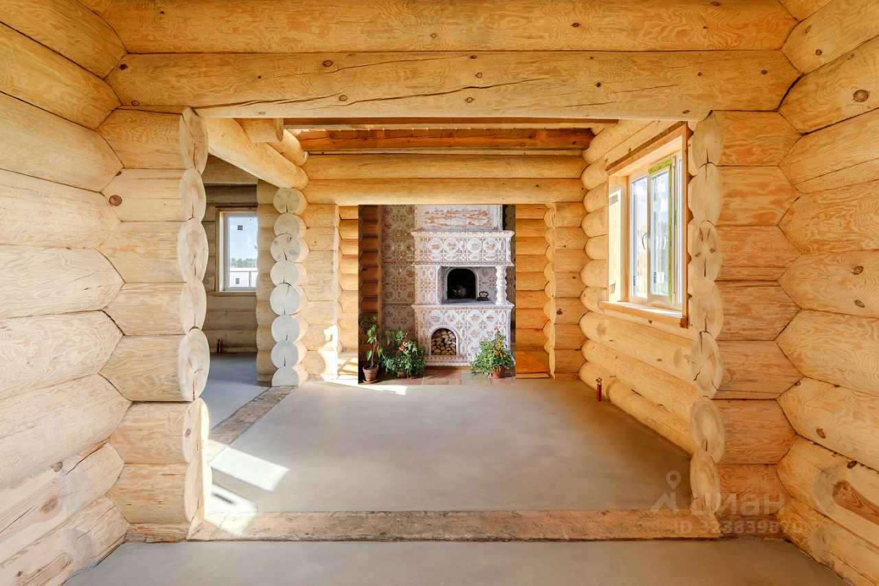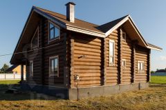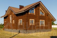 Дом срублен по старорусской технологии охлоп или проще говоря сибирская чаша из крупных бревен более 28см зимнего, хвойного леса к тому же Псковскими мастерами.