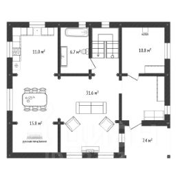 В доме удобная планировка, с 3мя спальными комнатами, техническими помещениями и 2 сан.узла.
