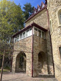 Уникальное трехэтажное сооружение с мезонином, мансардой и цоколем готово наполнить вас разными состояниями. Перемещаясь с этажа на этаж, из эркера в ризалит, не покидая единого пространства, здесь можно варьировать между романтической грустью и бурлящей как фонтан энергией. Сочетание камня и дерева в интерьере создают натуральную и уютную атмосферу.