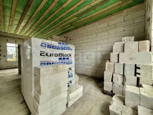 Фундамент ленточный, армированный. Цоколь облицован кирпичом, перекрыт пустотными плитами БЗСК. Стены выполнены из газосиликатного блока 300 мм и облицованы керамическим тепловым кирпичом "Баварская кладка" (Volgabryk), что обеспечивает отличную тепло- и шумоизоляцию. Кровля выполнена из металлочерепицы с драповым покрытием Grand Line с утеплением 200 мм и применением высококачественных мембран. Установлены ламинированные окна с профилем 70 мм (Элит Пласт).