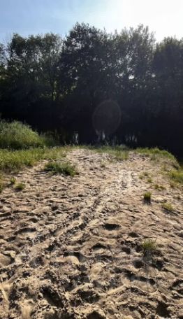 Плавный заход в реку, пляж песчаный, дно также песчаное, река Цна.