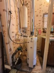 - газовый котел, все коммуникации (вода, электричество) в доме. Санузел совмещенный.
