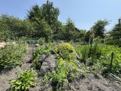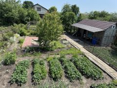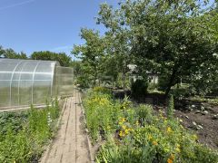 На участке располагается зона отдыха, сад и баня.