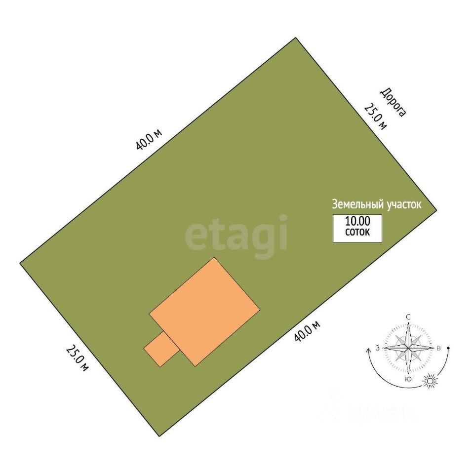 Участок прямоугольной формы 10 соток.