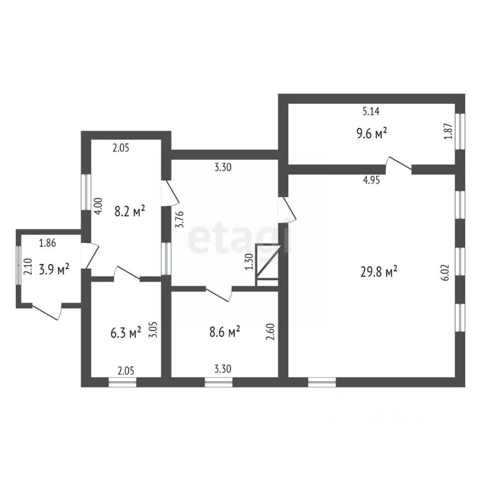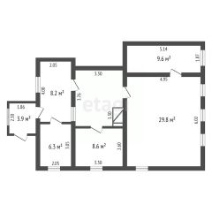 В доме три жилые комнаты площадью -8,60кв.м, 29,80кв.м и 9,60кв.м.+ проходная комната-11,60кв.м (без естественного освещения), где можно организовать прихожую с полноценной с гардеробной. Кухня 8,20м. Санузел -6,30кв.м.