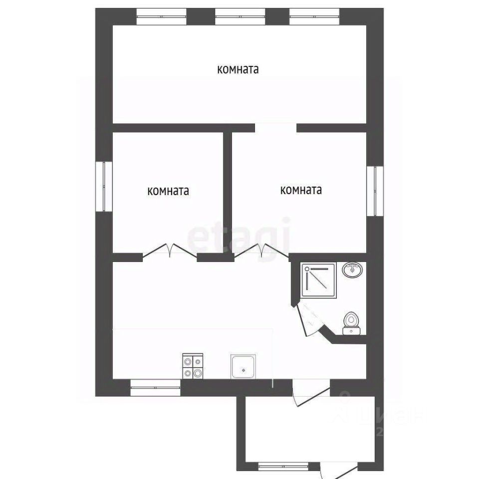 В доме три комнаты (одна проходная), кухня, сан.узел, вся проводка заменена на новую, сделаны натяжные потолки.