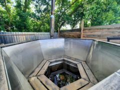 Дровяная баня 30 кв.м., чан для купания, мангал. В бане электрическое отопление, душ, туалет.Территория отдельно огорожена забором.