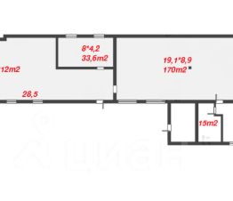 Состоит из 2х проходных помещений площадь 271м2 и 51 м2